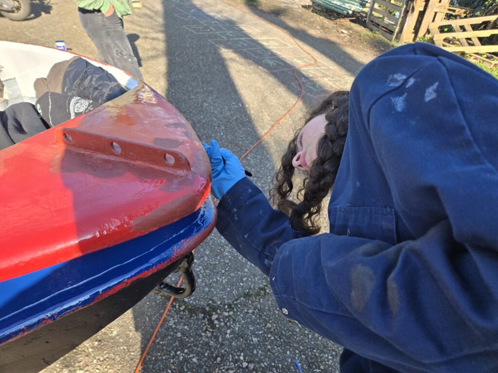 Ondertussen hebben de scouts zich gericht op de buitenkant van de boten. Met blauwe en bruine verf hebben zij de boten weer een stevige en mooie uitstraling gegeven. Ook hier werd hard gewerkt.